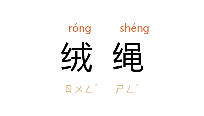 引《警世通言·崔衙内白鹞招妖》:“解散青丝,剪下一缕,用五彩绒绳结之。”茅盾 《一个真正的中国人》:“用两股头的细绒绳替小小姐结一件衬衫。”