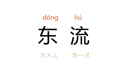 ⒉ 东去的流水。亦比喻事物消逝,不可复返。
