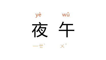 引宋 王巩 《闻见近录》:“李和文 都尉好士,一日召从官呼左右军官妓,置会夜午,臺官论之。”清 陈康祺 《郎潜纪闻》卷九:“崑山 三 徐 之太夫人, 亭林 先生女弟也。世称其教子极严,课诵恒至夜午不輟。”