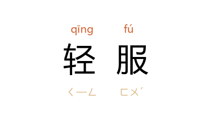 《三国演义》第五九回:“韩遂 即出阵,见 操 并无甲仗,亦弃衣甲,轻服匹马而出。”