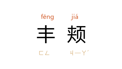 引唐 韩愈 《送李愿归盘谷序》:“曲眉丰颊,清声而便体,秀外而惠中。”明 吴宽 《封文林郎翰林院编修吴府君墓志铭》:“武丘 之塘,流水溶溶,秀眉丰颊,乃有此翁。”《老残游记》第十回:“却看那 扈姑,丰颊长眉,眼如银杏。”