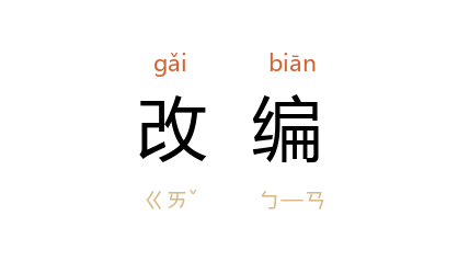 ⒈ 根据原著重新编写。改编所用体裁往往与原著不同。