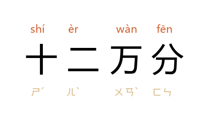 例如:「十二万分的祝福」、「十二万分的谢意」。