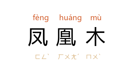 ⒈ 植物名。苏木科凤凰木属,落叶中乔木。二回羽状复叶,花序繖房状,夏季盛开,花瓣五片,焰红色,雄蕊十枚,荚果扁平、木质。主供观赏,为极佳的行道树及庭园树,木材亦可供为薪炭之用。