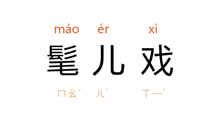 一说,原称“毛儿戏”。因创始班主名 李毛儿,故称。 《二十年目睹之怪现状》第七九回:“﹝ 雅琴 ﹞又预备叫一班髦儿戏来,当日演唱。”