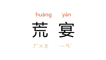 引南朝 宋 颜延之 《五君咏·刘参军》:“韜精日沉饮,谁知非荒宴。”唐 吴筠 《游仙》诗之二十:“斯乐异荒讌,陶陶殊未终。”清 吴伟业 《圆圆曲》:“红颜流落非吾恋,逆贼天亡自荒讌。”郭沫若 《李白与杜甫·杜甫的功名欲望》:“杜甫 的《登慈恩寺塔》中能够讽刺 唐玄宗 的荒宴,在《丽人行》中能够揭露 杨 家姊妹兄弟的豪奢。”