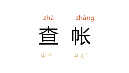 ⒈ 对企业、事业、机关、团体等单位的帐目进行检查的活动。有按特定目的和要求对部分帐目进行的检查;也有对某一定时期的帐目进行全面的检查。有时也用作审计工作的同义语。