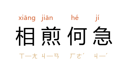 ⒈ 南朝宋刘义庆《世说新语·文学》:“文帝(曹丕)尝令东阿王(曹植)七步中作诗,不成者行大法。应声便为诗曰:'煮豆持作羹,漉菽以为汁。萁在釜下然,豆在釜中泣。本是同根生,相煎何太急!'”后因以“相煎何急”喻自相残杀或迫害。