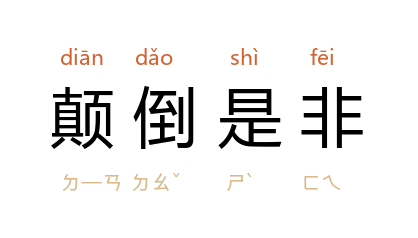 ⒈ 歪曲事实,混淆黑白。唐·韩愈〈施先生墓铭〉:「笺注纷罗,颠倒是非,闻先生讲论,如客得归。」也作「颠倒黑白」、「是非颠倒」。
