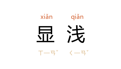 引清 李渔 《闲情偶寄·词曲上·词采》:“词贵显浅之説,前已道之详矣。然一味显浅而不知分别,则将日流粗俗,求为文人之笔而不可得矣。”清 张潮 《幽梦影》卷下:“作文之法,意之曲折者,宜写之以显浅之词。理之显浅者,宜运之以曲折之笔。”《二十年目睹之怪现状》第九七回:“其实极显浅的史事,随便一个小学生都知道的,倒没有人肯去考正他。”