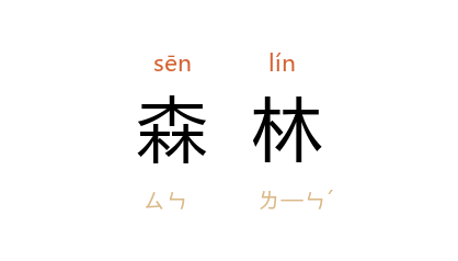 ⒈ 通常指大片生长的树木。林业上指在相当广阔的土地上生长的很多树木,连同在这块土地上的动物以及其他植物所构成的整体。