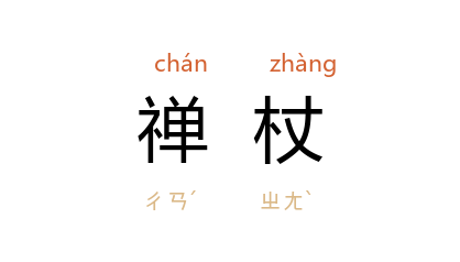 ⒈ 佛教指僧人坐禅欲睡时用以敲击使清醒的杖,后泛指僧人所用的手杖。