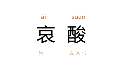引《三国志·魏志·庞娥传》“刊石表閭” 裴松之 注引 晋 皇甫谧 《列女传》:“昼夜哀酸,志在杀 寿。”唐 裴铏 《传奇·元柳二公》:“二公见之,前告叩头,辞理哀酸,求返人世。”