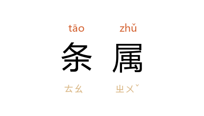 引《仪礼·丧服》:“冠绳缨,条属,右缝。”郑玄 注:“属,犹著也。通屈一条绳为武,垂下为缨,著之冠也。”李如圭 集释:“条属者,丧冠之制也。条,谓冠之缨武,其材以一条绳若布围之,两相交过,缀之以为武,垂其餘者以为缨。属,谓著冠于武,冠与武相连属也。”《礼记·杂记上》:“丧冠条属,以别吉凶。三年之练冠,亦条属右缝。”