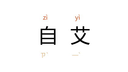 引《孟子·万章上》:“三年, 太甲 悔过,自怨自艾,於 桐,处仁迁义。”清 洪昇 《长生殿·复召》:“今自艾,愿承鱼贯,敢妒蛾眉。”清 黄宗羲 《子刘子行状》:“叔母 朱氏 无子,先生迎养於家, 朱氏 欲异居,先生輒自艾曰:‘古人数世同居,今吾一叔母不能安其心,何古今人之不相及耶!’”