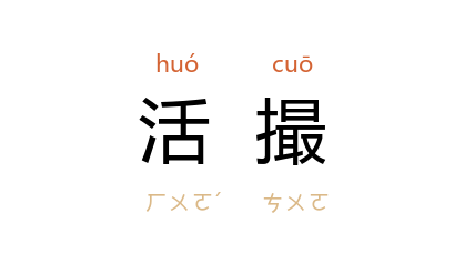 引金 董解元 《西厢记诸宫调》卷六:“促织儿外面鬭声相聒,小即小,天生的口不曾合。是世间虫蚁儿里的活撮,叨叨的絮得人怎过?”元 杨显之 《酷寒亭》第三折:“駡那无正事頽唆,则待折损杀业种活撮。”
