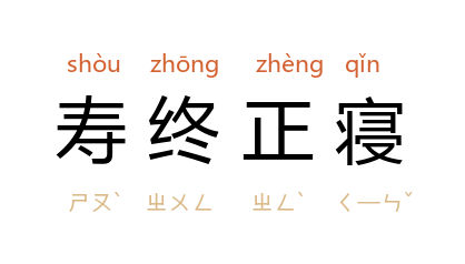 鲁迅 《华盖集·忽然想到(九)》:“我不想来加入这一类高尚事业了,怕的是毫无结果之前,已经‘寿终正寝’。”