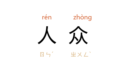 例孤当续发人众。——宋·司马光《资治通鉴》人众之中把二目圆瞪。