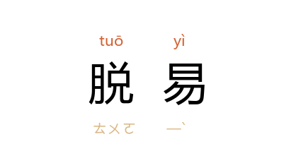 引《韩非子·八经》:“脱易不自神曰弹威。”晋 葛洪 《抱朴子·行品》:“无抑断之威仪,每脱易而不思者,轻人也。”《宋史·周湛传》:“湛 为人脱易,少威仪。”