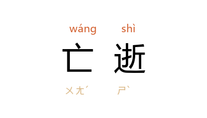 引元·关汉卿《五侯宴·楔子》:「不想我那夫主亡逝,无钱埋殡。」元·石君宝《秋胡戏妻·第一折》:「自夫主亡逝已过,止有这个孩儿,唤做秋胡。」