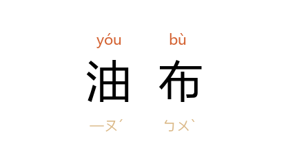 ⒈ 用于防水或防湿、防潮而上过油的布。