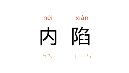 ⒈ 中医学名词。凡温热病邪不从外解,深入脏腑,或疮疡病毒不外泄,反向内攻,从而出现高热,烦躁、神昏、惊厥等症状者,称为“内陷”。