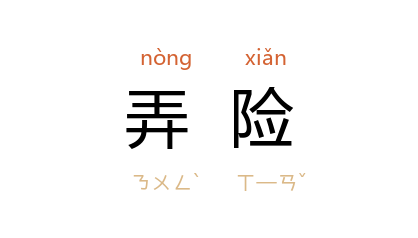 引元·贯云石〈清江引·烧香扫地门半掩〉曲:「高竿上再不看人弄险。」《三国演义·第九五回》:「亮平生谨慎,不曾弄险。」