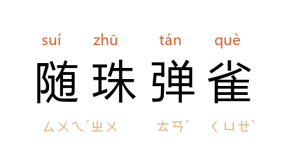 ⒈ 后因以“随珠弹雀”比喻处理事情轻重失当,得不偿失。