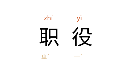 ⒉ 古代官府分派民户充当官差并供应财物的徭役。唐大中九年(公元855年)令州县作差科簿,按户等轮差。宋职役分四类:(1)供应官物的,如衙前;(2)督课赋税的,如里正、户长、乡书手等;(3)逐捕盗贼的,如耆长、弓手、壮丁等;(4)供官府使唤的,如承符、人力、手力、散从等。熙时职役改为雇役,到南宋恢复差役。明时亦有职役。