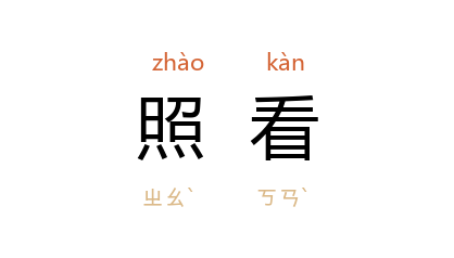 ⒈ 照料、看顾、帮助。也作「照顾」。