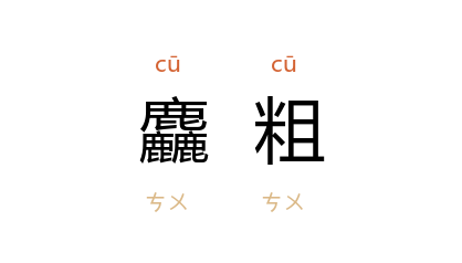 引《管子·水地》:“心之所虑,非特知於麤粗也,察於微眇。”《公羊传·隐公元年》“所传闻异事” 汉 何休 注:“於所传闻之世,见治起於衰乱之中,用心尚麄觕,故内其国而外诸夏。”《汉书·艺文志》:“汉 有 唐 都,庶得麤觕。”颜师古 注:“觕,粗略也。”章炳麟 《文学说例》:“予向作《正名略例》,尝道其麤觕矣。”