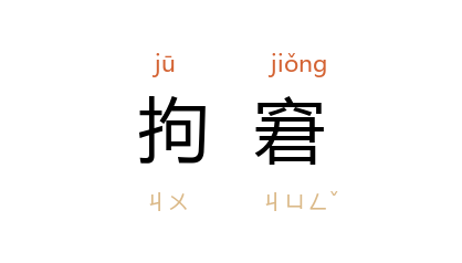 引宋 陆游 《上殿札子》:“若夫日趋於拘窘怯薄之域,臣实惧国势之寖弱也。”宋 叶梦得 《石林诗活》卷中:“自 唐 以后,既变以律体,固不能无拘窘,然苟大手笔,亦自不妨削鐻於神志之间,斲轮於甘苦之外也。”金 滕茂实 《立春》诗:“拘窘经时成土俗,聊从一醉适天真。”