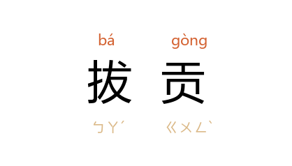 引《六部成语注解·礼部·拔贡》:「从秀才中选其文学拔萃者作为贡生,曰:『拔贡』。」