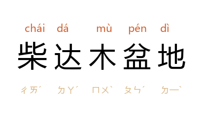⒈ 青海省西北部的内陆盆地,面积约 22 万平方公里。西部有许多低山和大片流动沙丘。“柴达木”蒙古语即盐泽之意。盆地中央有中国最大的盐湖察尔汗盐湖,还有煤矿、铅锌矿和石油。