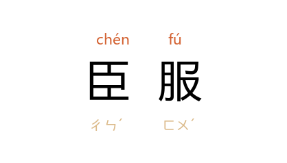 ⒉ 服输。如:「职棒年度总冠军赛,雄狮发威,巨象臣服。」