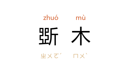 引《尔雅·释鸟》:“鴷,斲木。”郭璞 注:“口如锥,长数寸,常斲树食虫,因名云。”《淮南子·说山训》:“貍头愈鼠,鸡头已瘻,蝱散积血,斲木愈龋,此类之推者也。”宋 陆游 《晚兴》诗:“不嫌终日无来客,时听荒园斲木声。”