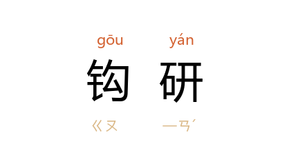 引清 曾国藩 《书学案识后》:“惠定宇、戴东原 之流,鉤研詁训,本 河间献王 实事求是之旨,薄 宋 贤为空疏。”清 王先谦 《<续古文辞类纂>序》:“厥后鸿生鉅儒,逞志浩博,鉤研训詁。”