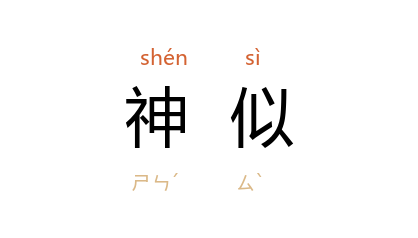 例如:「十分神似」、「他画的春晓鸡啼,形肖神似,栩栩如生。」