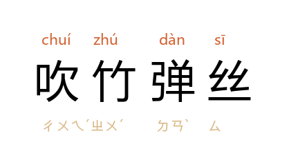 引唐 韩愈 《代张籍与李浙东书》:“閤下凭几而听之,未必不如听吹竹弹丝,敲金击石也。”宋 京镗 《雨中花·重阳》词:“巷陌连鑣并轡,楼臺吹竹弹丝。”明 刘基 《北岭将军庙碑》:“吹竹兮弹丝,女巫舞兮纷陆离。”清 袁枚 《随园诗话》卷四:“阮亭 善为角徵之声,吹竹弹丝,易入人耳。”