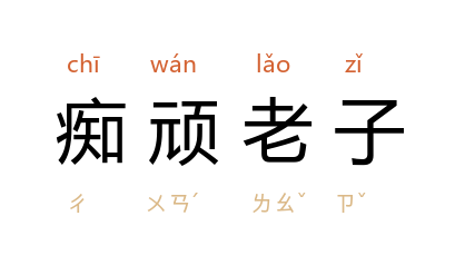 引《新五代史·杂传十六·冯道》:“德光 责 道 事 晋 无状, 道 不能对。又问曰:‘何以来朝?’对曰:‘无城无兵,安敢不来。’ 德光 誚之曰:‘尔是何等老子?’对曰:‘无才无德痴顽老子。’ 德光 喜,以 道 为太傅。”亦省作“痴顽老”。 宋 戴复古 《送别朱兼佥》诗:“黄堂若问痴顽老,新有登楼十二诗。”
