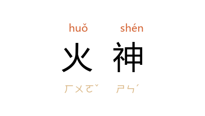 引《国语·周语上》“回禄 信於耹隧” 三国 吴 韦昭 注:“回禄,火神。”《山海经·海外南经》“南方 祝融 兽身人面,乘两龙” 晋 郭璞 注:“火神也。”鲁迅 《南腔北调集·火》:“然而 燧人氏 也被忘却了,到如今只见 中国 人供火神菩萨,不见供 燧人氏 的。”