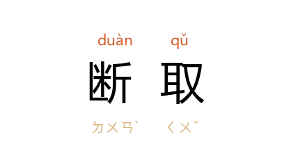 引宋 王安石 《纯甫出僧惠崇画要予作诗》:“颇疑道人三昧力,异域山川能断取。”宋 范成大 《次韵袁起岩常熟道中三绝句》之三:“使君横槊赋诗回,断取天风海雨来。”清 龚自珍 《乙酉补题李秀才梦游天姥图卷尾》诗序:“其曰 天姥 者,或但断取字义,非 太白 诗意也。”