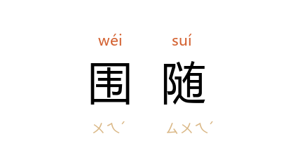《二十年目睹之怪现状》第一〇八回:“后头围随的人,也不知多少,一般的都是手执了香,涕泪交流的,一会儿都渐渐跟随过去了。”