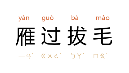 ⒈ 大雁飞过都要伸手拔几根毛,比喻凡是过手的事都要得些好处,绝不轻易放过。