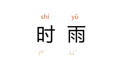 引《周礼·春官·小祝》:「逆时雨,宁风旱。」《幼学琼林·卷一·天文类》:「甘霖甘澍,俱指时雨玄穹。」