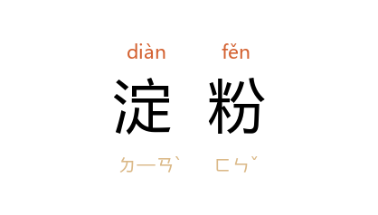 ⒈ 一种多糖类。大量存在于植物的根、茎、种子内。不能直接为人体吸收利用,而是先经水解变成可溶性淀粉、糊精、麦芽糖,最后变为葡萄糖,才能为人体吸收。