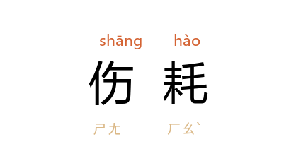 引《汉书·卷六六·公孙贺传》:「重马伤耗,武备衰减。」宋·沈括《梦溪笔谈·卷一一·官政一》:「监司奏劾杭州不恤荒政,嬉游不节,及公私兴造,伤耗民力。」