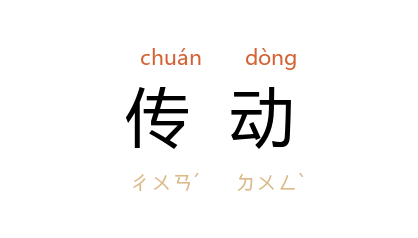 ⒈ 把动力从一部分传递到另一部分。传动方式有机械传动、液压传动、电力传动等。