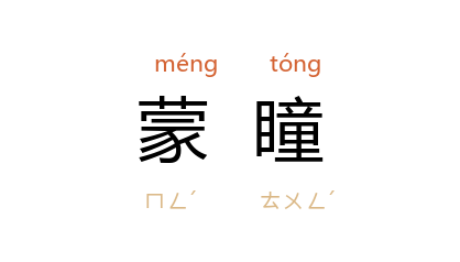 引清 蒲松龄 《聊斋志异·花姑子》:“一夜,守者困怠并寐,生矇瞳中,觉有人揣而抁之。”清 蒲松龄 《聊斋志异·董生》:“醉态矇瞳,不知所见伊何,遂诬人若此。”