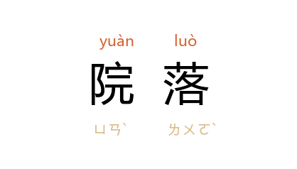 ⒈ 房屋前后用墙或栅栏围起来的空地。